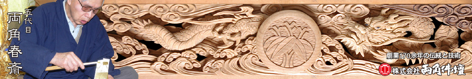 お仏壇は長年、漆塗りに金箔の技法を用いてきましたが、戦後は主に 地元の銘木や、唐木材の素材そのものを生かして作られてきました。 現在古い金箔のお仏壇などは、弊社にて修復・塗り替えなどをして、 お納めしております。
